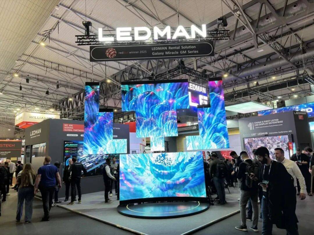 展台核心聚焦于高端画质与专业设计。搭载广电级性能的DF0.7超高清4K显示屏,凭借7680Hz超高刷新率,为指挥中心等专业场景提供旗舰级视觉体验。荣获欧洲产品设计大奖的户内固装X系列,通过独创的“13922”结构实现真正无缝拼接,满足高端固装对画质与造型的严苛要求。便捷安装与绿色节能方面,雷曼同样引领创新。获得红点设计奖的租固两用GM系列,其三重锁具设计将装维效率提升30%,极大拓展租赁应用边界。而荣获MUSE设计金奖的户外旗舰Z系列,在实现10000尼特高亮与IP67级防护的同时,能耗较常规产品降低50%,彰显了绿色科技的理念。